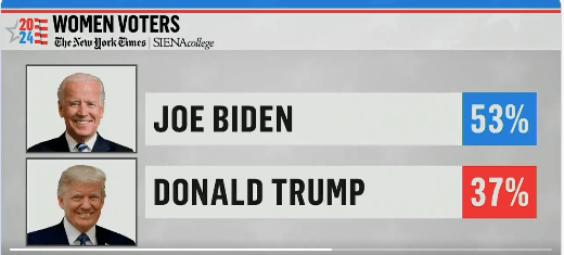 As much as any poll this far from election day means anything, the latest NYT poll shows Biden consolidating a lead among women voters.
