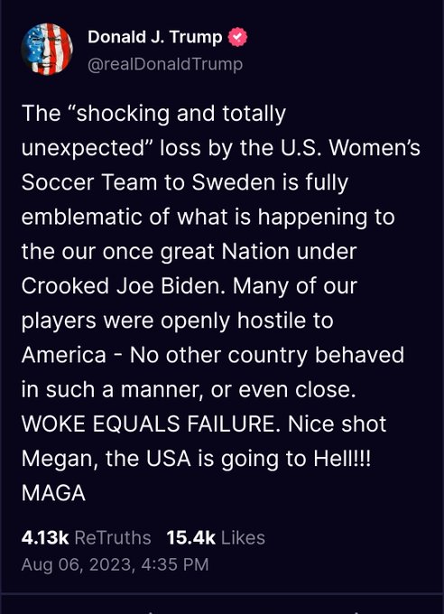 His latest target was the US Women’s soccer team, and how they represent everything he says he hates about the country.