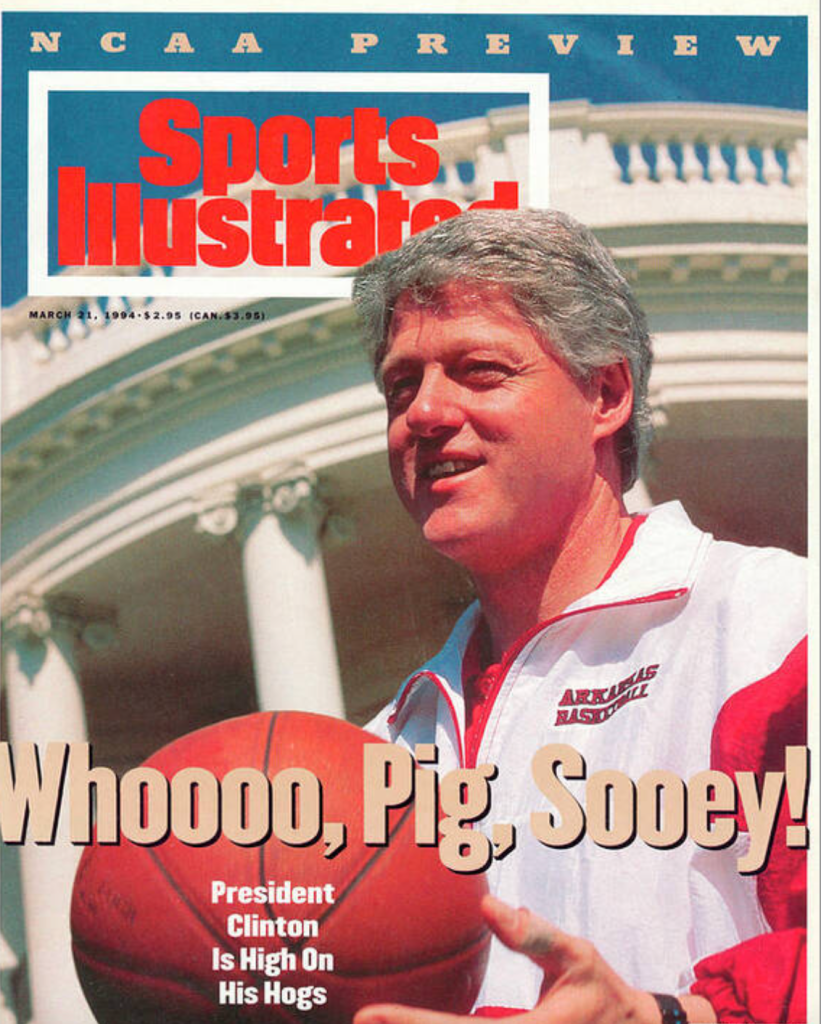 Chris: Major was the UK prime minister whose period in office most overlapped with Clinton, and though they were both big sports fans I’ve come across nothing which suggests they ever bonded over it. Of the two, only Clinton truly exploited sport for political ends. His fandom was part of his political persona – as early as 1994 he was on the cover of Sports Illustrated for a piece around college basketball titled The First Fan.