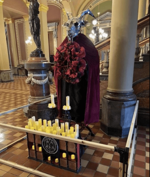 - A Satanic display erected in the Iowa Capitol Building last week had, surprise surprise, provoked, let’s call it, an intense debate over free speech. The effigy was reportedly beheaded today.