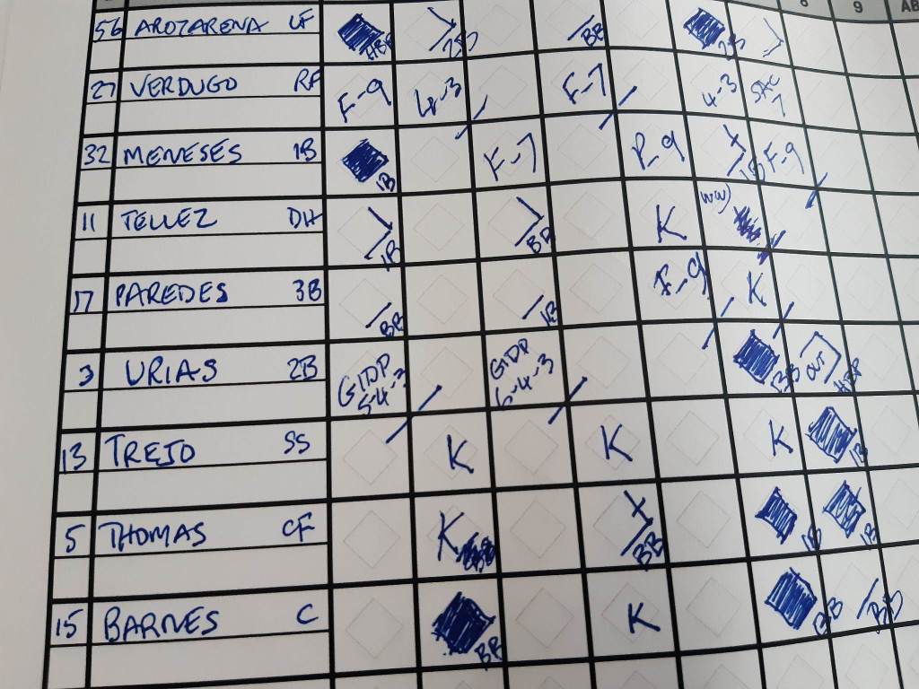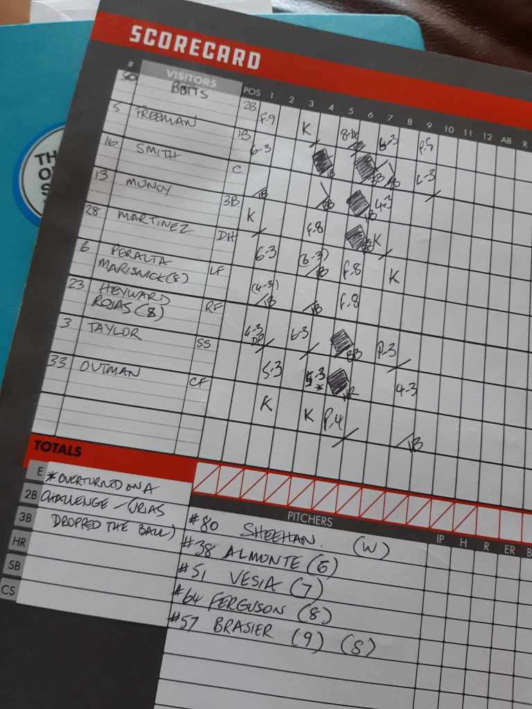With clouds still hanging ominously over the city today, we had a “game-and-a half” doubleheader, finishing last night’s remaining frames before the scheduled game. One ticket, one admission – bonus baseball, plus getting to see Miggy one last time.