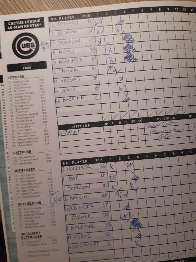 A beautiful St Patrick’s Day in the land of actual snakes, and the Cubs’ split-squad couldn’t manage a win between them, with the traveling half tying the White Sox 4-4 at Camelback Ranch.