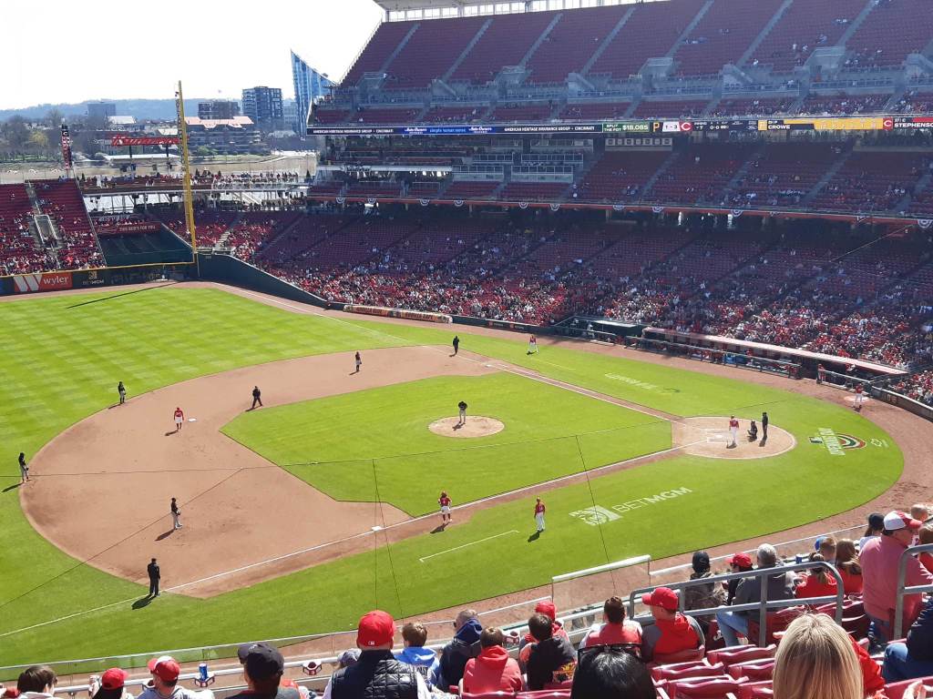 Like yesterday against the Pirates, I was there with my friends Marc Bona and Chris Lamb, a Reds’ fan for fifty years, who said he couldn’t remember the last time he’d watched his team win back-to-back games. That may have been an exaggeration…