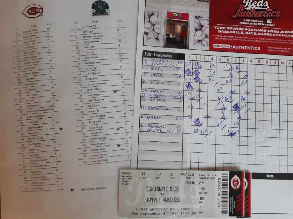 Tuesday, 5 September: Cincinnati Reds vs Seattle Mariners, Great American Ball Park, Cincinnati, OH.