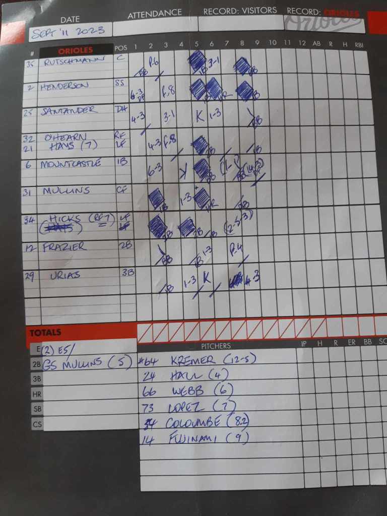 It’s now a two-game series, and if Rodriguez and Kremer can help the O’s split, or at least avoid the sweep, then normal service can be resumed. But Brandon Hyde and his team badly need an injection of their earlier self-confidence heading into the final weeks of the schedule (See the previous Game Note here from Sept 11). They’ve now lost four in a row – their longest skid of the season – at exactly the wrong time.