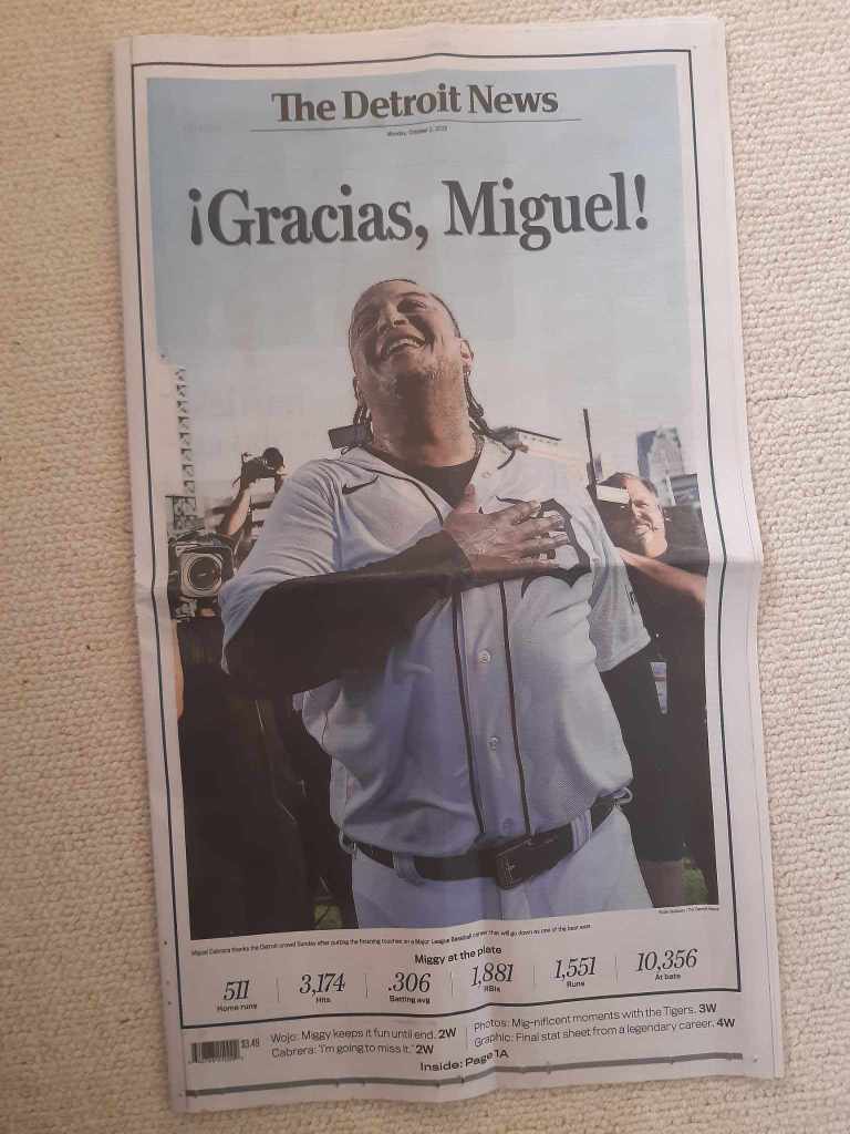 Detroit came out to say farewell to Miguel Cabrera – 500 home runs, 3,000 hits, 600 doubles, .300 career average and a Triple Crown – and watched him end his career by making an unassisted put-out at first base