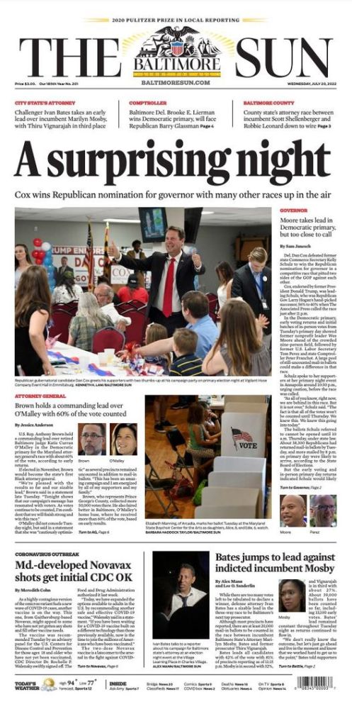 In Maryland’s primary election yesterday, Trump-endorsed, stolen-election advocate Dan Cox won the GOP nomination for Governor. The race shouldn’t be close in November, whether he’s up against Tom Perez or Wes Moore, BUT it again raises the question of exactly how wise it is of Dems to contribute to extreme GOP candidates’ primary campaigns, with the expectation they would be easier to beat…?