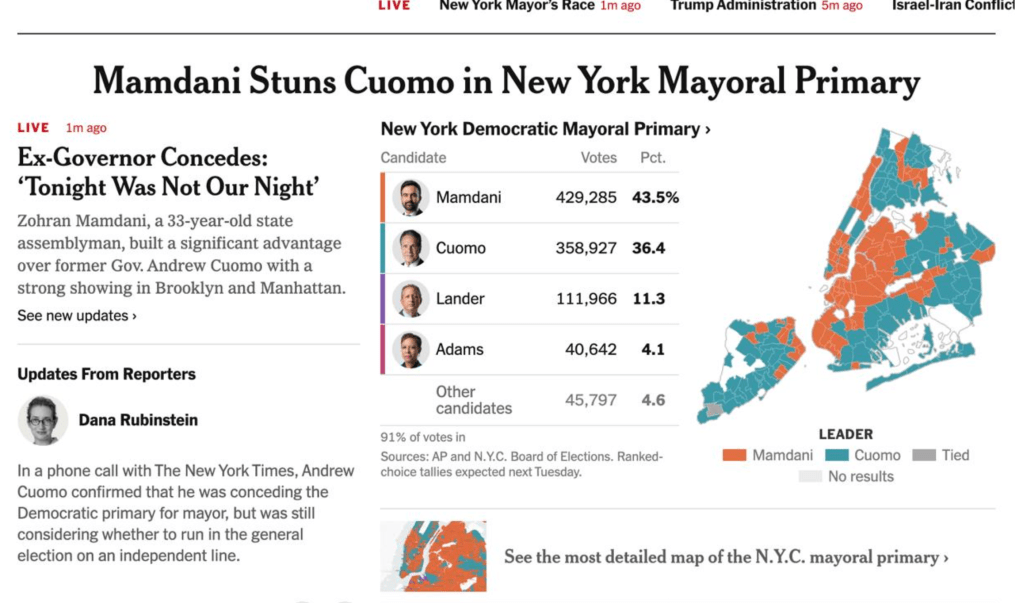 Former Governor Andrew Cuomo’s bid to become Mayor of New York City hit a hurdle when he lost Tuesday’s primary to relative political newcomer Zohran Mamdani.