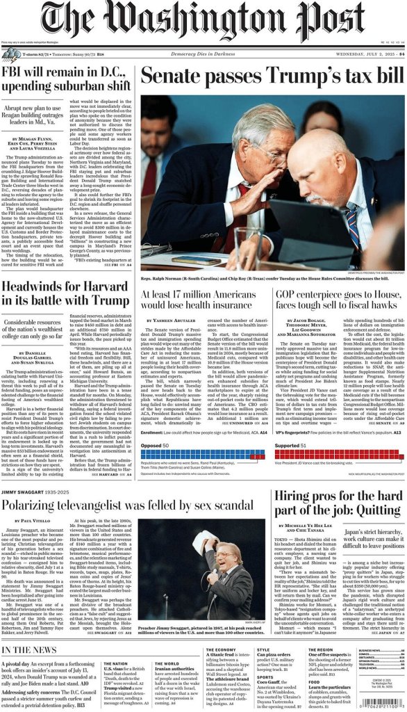 After a record “vote-o-rama” VP JD Vance provided the casting vote as the Senate passed the Trump administration’s centerpiece tax and spending legislation by a 51-50 margin. The bill is set to increase the deficit, cut Medicaid and provide tax breaks for the wealthiest Americans.