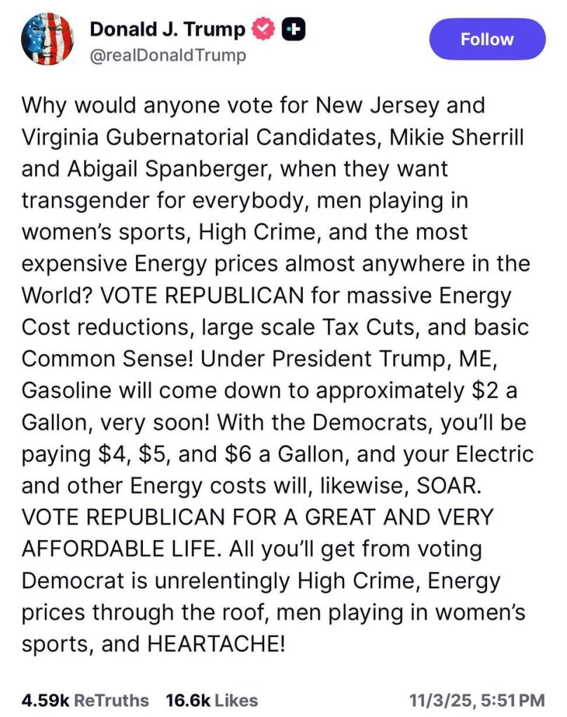 The president was his usual Truth Social self yesterday. We can probably expect more of this as the evening goes on.
