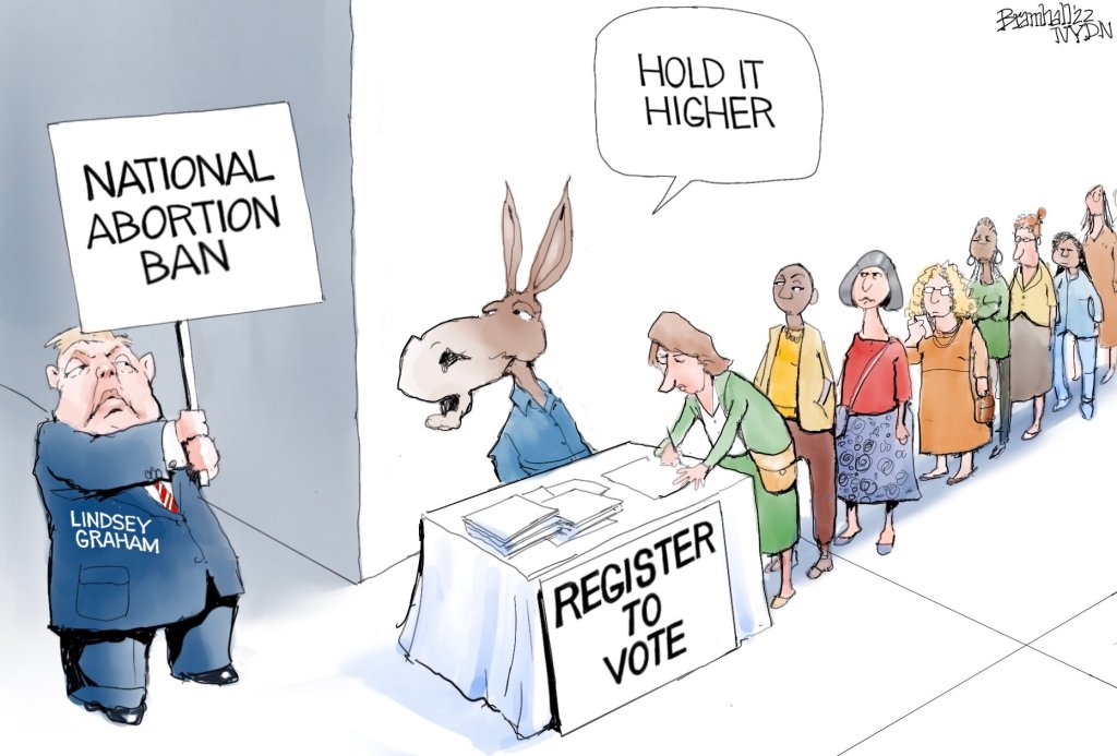 Meanwhile, in an apparent about-turn on previous statements, Sen Lindsey Graham introduced legislation that would impose a national ban on abortion after 15 weeks. Having seen potential voter engagement spike on the pro-choice side, the aim here may be a strategic plan to galvanize anti-choice voters behind specific legislation. Not all on the GOP side see it that way…