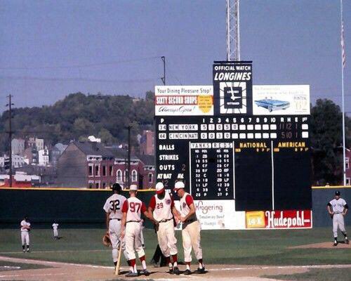 David – My Dad took me to my first game at Crosley Field in Cincinnati. Crosley was a wonderful old ballpark with some great quirks like “The Terrace” in left field, where the field actually sloped upward to the wall, and the Longines clock above the scoreboard in center field. It was in an old, sort of industrial neighborhood and going there just felt like going into another world, with the smells of peanuts, hot dogs and beer and the noise of the crowd.